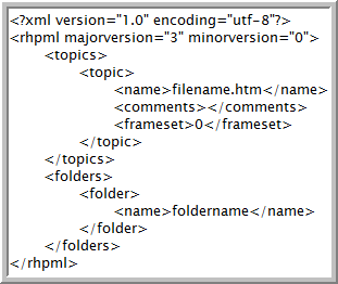 If you are using RoboHelp 8 and encounter this problem, check that you have Service Release 8.0.2 applied. If you do not, then do not edit the FPJ file(s) in this way, instead apply the service release and read the instructions under RoboHelp 8 Folder Bug above.