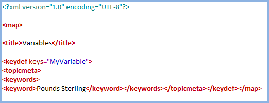 - Copy the file from a good backup or another project that has the required values or is close enough, then edit in Robohelp or a text editor