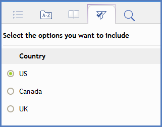When the user makes their selection(s), the content is filtered so that here the user would only see topics and content that is either untagged or has the US condition tag applied. It works the opposite way to the usual build expression scenario where content is excluded. Filtering is inclusive, not exclusive.