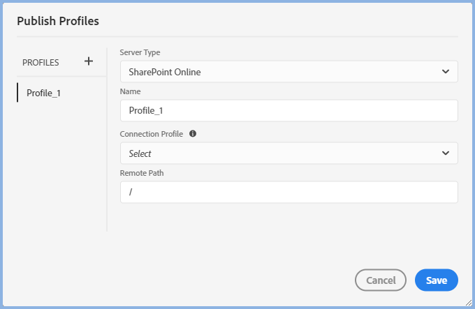 When publishing content, that same Connection Profile can be used here.