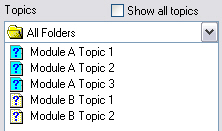 - Your TOC may not include topics that you want in the printed output. Click the Topics dropdown and select the folder that contains the topic or select All Folders.