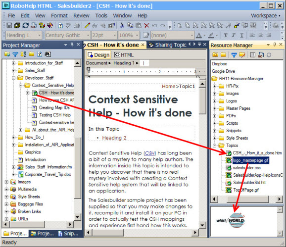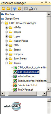 Resource Manager allows you to share images, snippets, master pages, topics and multimedia files such as SWF with other authors and other projects.