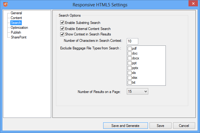 The Content settings are the same as with WebHelp. With Responsive HTML5, the content will be the same on all devices. Use Multiscreen HTML5 if you need to have different content on different devices.
