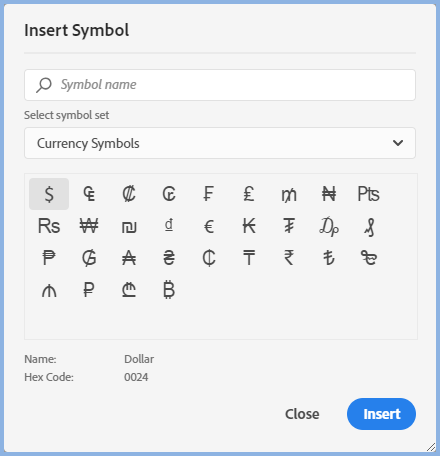 With Update 8 applied, a toolbar icon accesses a dialog with categories of special characters to make it easier to find and insert a wide range of special characters.