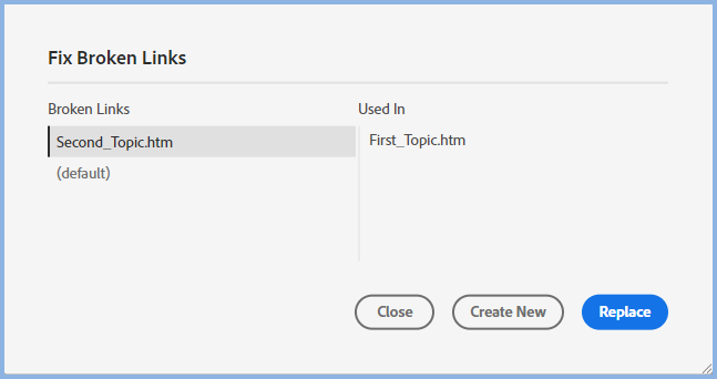 Right click a topic in the Contents Panel to display the Context Menu. Select Show References to see this information in graphical format. Click the broken link to access the Fix Broken Links dialog shown above.