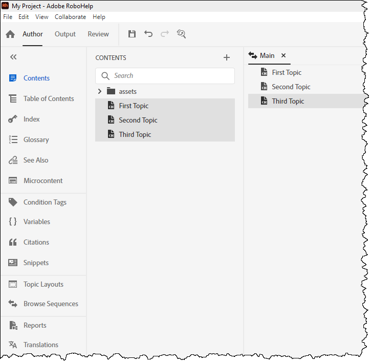 If some of your outputs only include some of the topics in the browse sequence, Adobe RoboHelp will automatically exclude the topics not in the output.