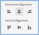 To apply Horizontal alignment to click in the text and then go to Content Properties > Font > Text Alignment.