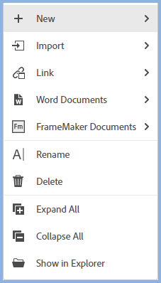The options will vary according to the file type selected. The menu shown below is for topics.