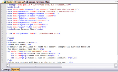 You can now open many topics in the Document Pad and view each topic in either the Design Editor (WYSIWYG) or the HTML editor (code view). You can select text in one topic, drag it to the tab for another topic, that topic will then display and you can drop the text where you want.