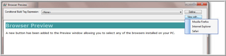 A new button has been added to the Preview window allowing you to select any of the browsers installed on your PC. The topic then opens in the selected browser.