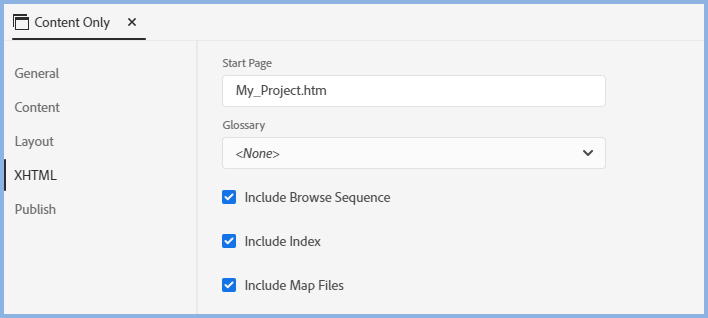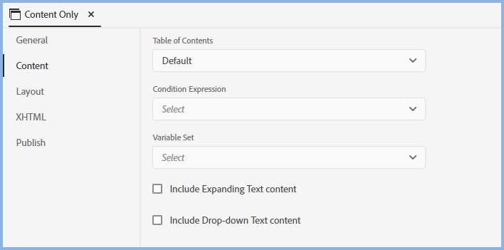 Prior to Update 4 the Content Only Output covered Salesforce, Servicenow, Zendesk and XHTML. From Update 4 onward the Content Only output is for XHTML only. Salesforce, Servicenow and Zendesk have been moved to a new output type known as Knowledge Base which now also includes Zoho.
