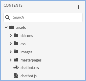 - Select the cbicons folder and the chatbot.css and chatbot.js files.
