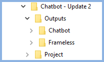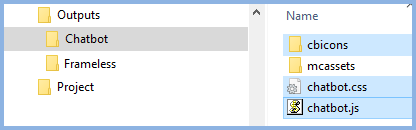 - When the frameless output has been generated, use File Explorer and go to the chatbot output folder. Copy the mcassets folder.