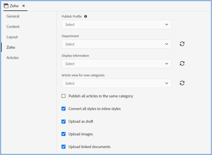 Display Information - Any groups that you have set up in Zoho will be displayed here. Select as required. Click the refresh icon to update the list.