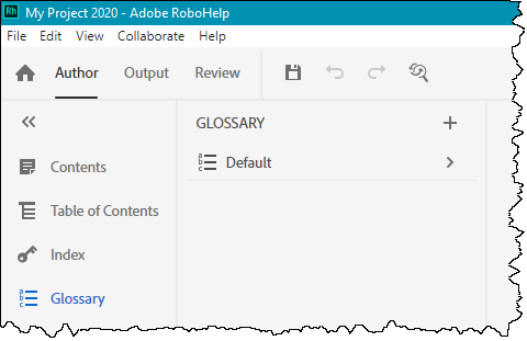 Click the Glossary icon in the Project toolbar and click the + icon to create a glossary.