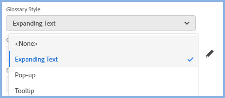 When you generate an output, there is a Glossary Style option that allows you to display the glossary term as Expanding Text, a Pop-up or a Tooltip.