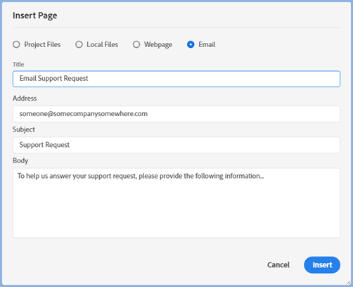 Creating emails is new. The title will appear in the TOC. Clicking that page will open the email in the users default email program.