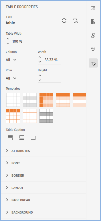 If a table has focus, an additional icon and Table Properties will be displayed so that you can edit the table as described in RH2020 Tables.