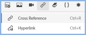 Cross references give more functionality than hyperlinks but link only to targets within the project. Hyperlinks can link to internal or external content.