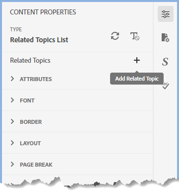 To link topics place the cursor next to Topic List and go to Content Properties. Click the + icon next to Related Topics to select the topics you want users to see.