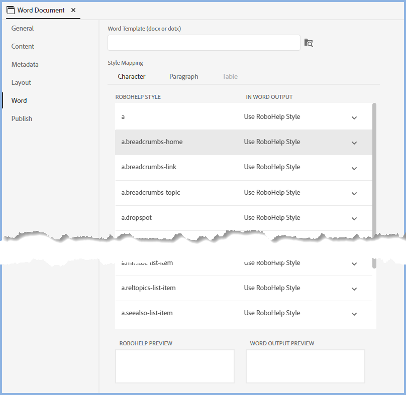 When generating a Word output Adobe RoboHelp also applies the three check boxes shown below and in most cases the mapped tables will look correct in the generated Word document.