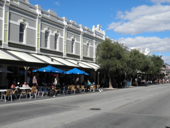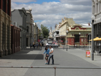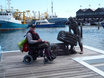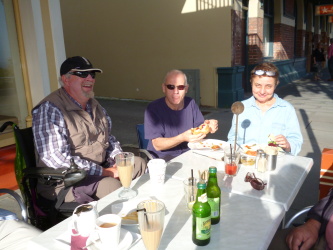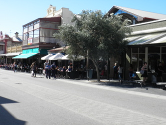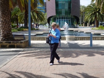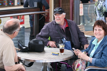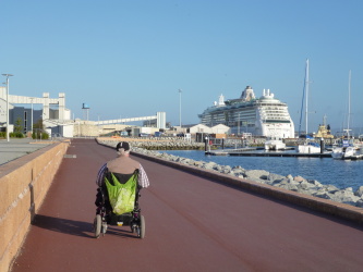 We had breakfast in The Dog House! No, the men were not in trouble, The Dog House is in fact a cafe serving hot dogs and suchlike and during breakfast time it is used as an overflow area. It suited us well as it was easier for Malcolm in his wheelchair. Then Malcolm, Eric and I went into Fremantle to get a Vodafone dongle (much cheaper than the ship's wireless connection) and various other items.