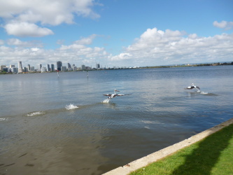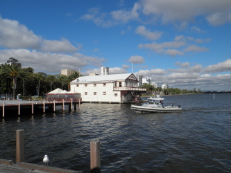 Malcolm and Sue took us into Perth by bus and train. Having acquired a collection of pens over the years, I made a point of visiting T Sharp and Co, a pen shop that I had read about in a journal. It was lovely to see a real pen shop again as so many are closing down in England but I was amazed by the prices. A pen that I know retails in England at £40 would be A$55 at the prevailing exchange rate, it was priced at A$90! That was not because of the prices at that shop, quality pens seem to be expensive everywhere. Another pen I know to be £250 in England was over A$500. After wandering around the shops for a while we had coffee and then lunch. Then it was onto the ferry across to South Perth where we were able to photograph black swans and pelicans. A drink was called for on our return to North Perth and we found ourselves in The Lucky Shag Bar! Don't get excited lads, a shag is also a type of bird, the feathered variety!