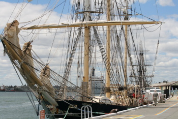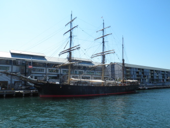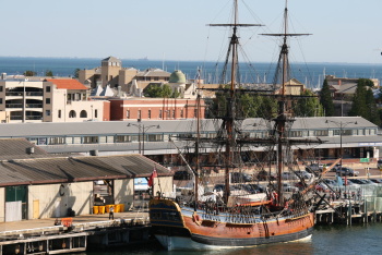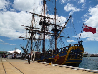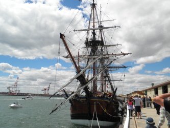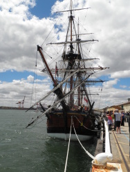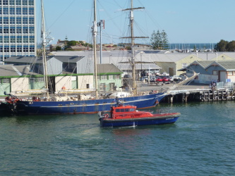 Today was a public holiday so transport all around Perth was free. Again it was a combination of bus and train but this time into Fremantle, the port from which our cruise was due to start the following Monday. HMS Endeavour is currently sailing around Australia and we were pleased to learn it was in Fremantle. Compared with the modern cruise ships, the size was that of a bath toy.