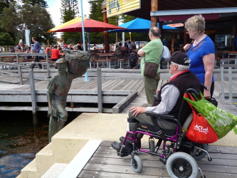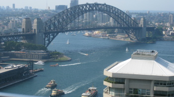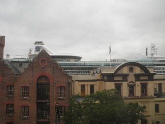 Arrival was very early and we departed the ship at 07.30 and queued about twenty minutes for a taxi just to find our hotel was walking distance from where the ship was docked! With fewer cases we could have walked to the Holiday Inn. We got Malcolm's equipment set up and although the accessible room wasn't perfect for him, we found acceptable solutions to each problem. With that done, Malcolm, Sue, Gill and I set off for Manly Beach and Darling Harbour while Eric and Ole did their own thing.