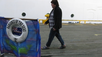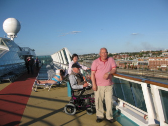 Because of a planned change of computer systems, the cab company would not take advance bookings so Malcolm had made a direct arrangement with one of their drivers to pick us all up in a maxi taxi designed to accommodate his wheelchair and all six of us going on the cruise. The taxi would also take some of the luggage with the rest being taken by a friend. The friend turned up, the taxi did not. Knowing the ship was leaving a day late meant there was no need to panic as whilst we were asked to board as planned, we know the ship was not leaving port. Fortunately we were able to organise a suitable replacement cab.
