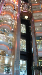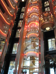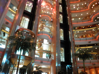 In the afternoon we enjoyed a classical guitar soloist in the Centrum, an area of the ship that is open from Deck 3 to Deck 13. After that there was a mandatory lifeboat drill which was managed very well. Then, a day late, we set sail.