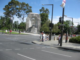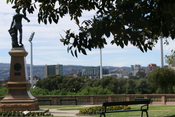 With an early arrival in Adelaide there was no rush to leave the ship. We had breakfast aboard and then caught the train from Outer Harbour into Adelaide. The plan was to get the circular bus 99c which would give us a free tour of Adelaide. After waiting half an hour the bus arrived with a broken ramp so Malcolm would be unable to board. The driver advised catching the opposite direction bus so we crossed over and shortly afterwards a very different bus arrived, proclaiming it was the world's first solar powered bus. The driver was very helpful and explained he went a different route but it was also a circular tour so we boarded. The broken ramp on the first bus proved to be our good fortune as this was a better route and the driver also pointed out key points. The tour included the better residential areas where again we were surprised by the prices and the lack of ground around the houses.