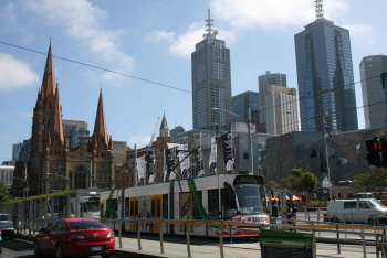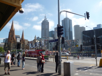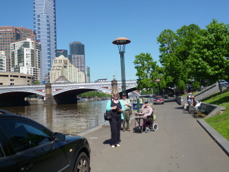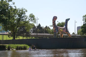 We had been warned there was a chance of rain today and the weather as we docked was dull, but how it changed into another glorious day. What we wanted to do was Puffing Billy, a steam train ride about an hour out of Melbourne. However, we learned it would be half an hour to the city centre and an hour to the start of the ride. Doubling that up and allowing for connections we decided the timing back to the ship was just too tight. Eric and Ollie were meeting family so Malcolm, Sue, Gill and I caught the tram into the city centre. Then Gill and I went off on a short river cruise to Herring Island and rejoined Malcolm and Sue at the National Gallery of Victoria. From there we found our way to the Eureka Skydeck 88 where we were told there was an excellent view of the city but we decided that whilst the claim would be true, the price was a bit excessive for the amount of time we would spend there so we gave that a miss.
