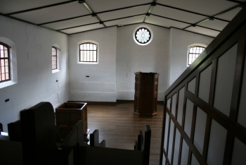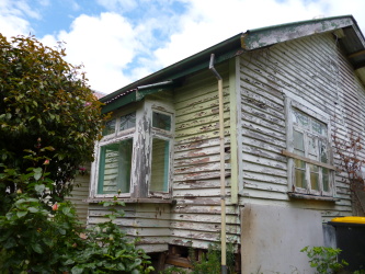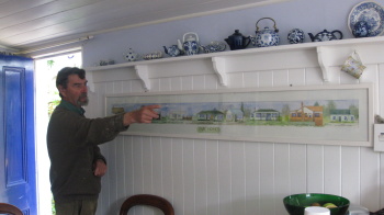 Five years ago, the artist restored his house from being from a wreck similar to what you see above and here. The loft is used by him for painting and by his wife for "artistic needlework". |