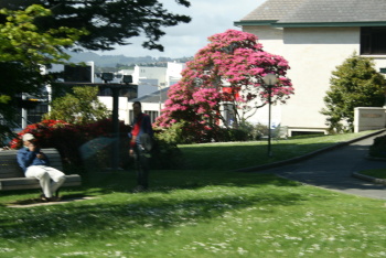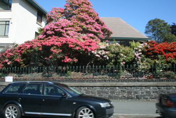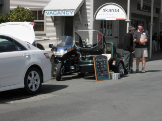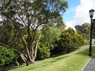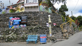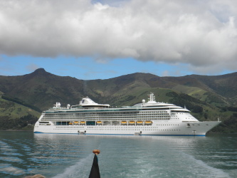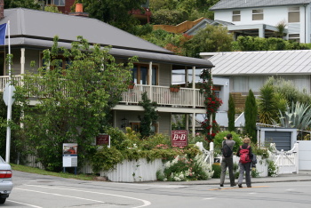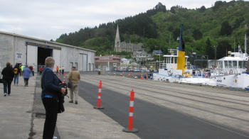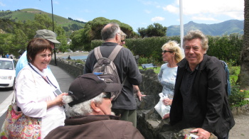 When we booked this cruise the planned stop was Christchurch but the people there had suffered an earthquake causing terrible damage and the port has not yet reopened to cruise ships. Access ashore was by tender but the ship's crew were able to lift Malcolm in his chair into the tender boats and we were all so glad they could. Akaroa is small but beautiful. We wandered into the side roads and found traditional wooden houses with the most beautifully tended English style gardens. The people were so friendly. We just greeted one man who was taking his rubbish bins back in and next minute we were having a chat about how he got to Dunedin, where he was from and so on. He told us he was an artist and when he saw the interest shown by some of our group, he invited them in to see his work. Further on a lady stopped her car just to have a chat.