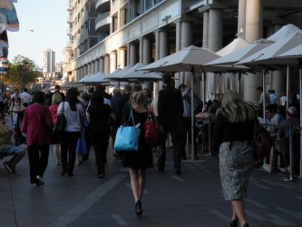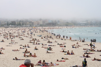 During the day we met up with Lis, a friend of Malcolm's, who would guide us around. First though we had to get a memory stick large enough to store all the photos everyone had taken so that Malcolm could take them home. Lois, Malcolm and I went off to do that while the others went direct to Bondi Beach. When they got there the place was heaving as it was fine Sunday. Gill's ankles swoll badly and the heat was just too much for her. I only learned of this while we were en route to join them so it was agreed that as soon as we all met up, Gill and I would return to the hotel while the others enjoyed the beach, they were of course all quite used to the heat. The traffic was so bad it was an hour before Lois, Malcolm and I got to Bondi!