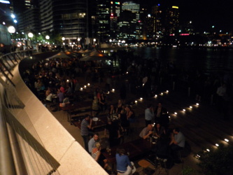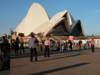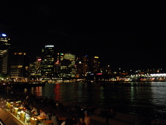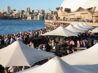 In the evening the four of us had a meal before setting off for the Sydney Opera House where we met up with Eric and Ole for the ballet The Merry Widow. The Opera Bar is outside on the waterfront and we were amazed by the number of people there.