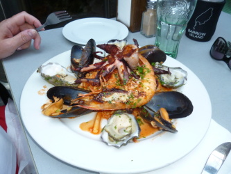 On our way back to the shops and restaurants we saw Con and his wife Susie (from Black Tie) and they came over and had a chat with us before we went off to lunch. I enjoyed some Green Lipped Mussels (larger than the usual mussels and with a green edge to the shell)