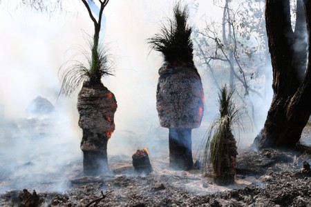Sue had to go to a funeral so I drove Malcolm's adapted VW to Lake Leschenaultia (via Harvey Norman to buy an ANZ satnav). The cafe there was closed but nearby some rangers were burning some Black Boys to make the seeds germinate giving Gill the chance to photograph this.