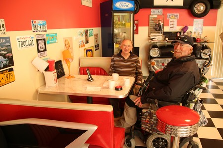 On the way we had bumped into one of Malcolm's friends at a petrol station. Malcolm had only just said we were in his territory and been telling us of his amazing property. Lou Jones invited us to drop in on our way back and we did. Wow. Outside it looked rather like a corrugated steel warehouse but inside it had the most amazing rooms and collections. At one time Lou had been in a band and after going around the house, he put some karaoke on the TV and sang a couple of numbers. One of those magic moments in life where something is so different and great fun. He also played some Lettice Rowbotham songs from Britain's Got Talent that we had not seen. Lou is a real character.