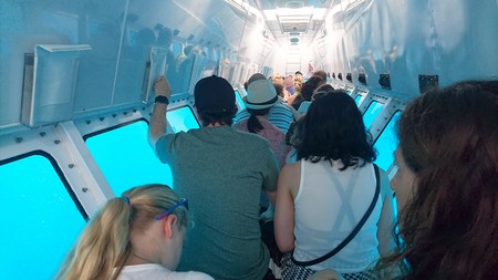 It was a dull day but the weather did improve as we got to the reef, which apparently is often the case. At the platform, we went straight to one of the submersibles as there was virtually no queue. The reef was not as colourful as I had expected and more recently I have learned that this is because of "bleaching". It is a problem in parts of the reef and unfortunately in the areas where tourism is permitted. I understand that whilst the corals may recover, this could take up to ten years. However, it was beautiful seeing how all the corals sort of wove together.