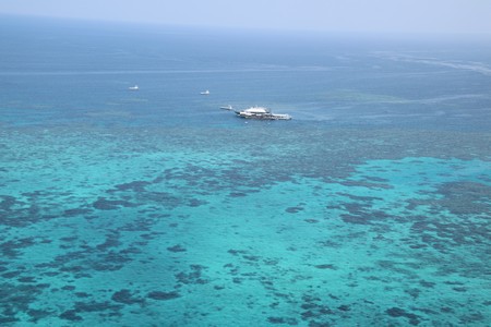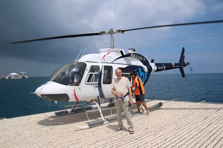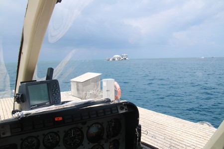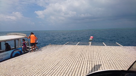 We then had lunch which took us nicely timewise to our helicopter trip. Gill was fortunate to get the seat beside the pilot and the weather really improved at this point. It was a totally different perspective and we were both so glad we had booked this, it made the day. After that there was still some time before the return trip so we went on the submersible again. The queue for that never seemed to be as long a I had expected. The area for snorkeling seemed very busy but an Australian family from Melbourne we sat with on the way out and back said it did not feel so crowded in the water. We also had a look around the underwater observatory on the platform.
