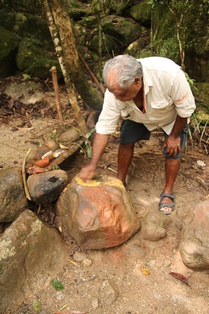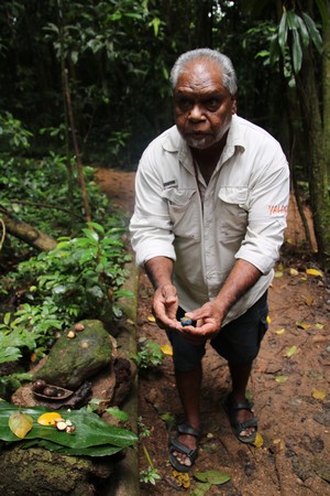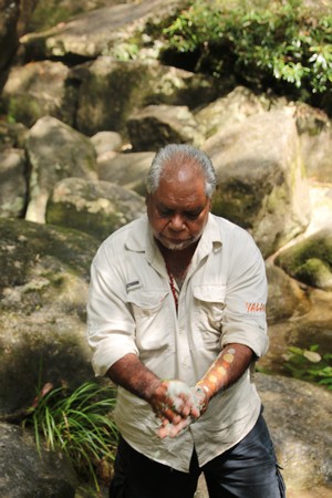 Our group of nine was then driven out to the start of our walkabout with Roy, an Aboriginal guide who proved to be excellent. He took us around a pathway stopping at various points to tell us of the history and culture of his people. At school, as an Aborigine he was not supposed to mix with white pupils but they were attracted by the fruit he had for lunch and wanted some. He started taking some every day and it got more popular. He then asked for some of their lunch in return. It started a lifetime of mixing with white people and working together. He told us of white friends who had been ill because of contact with certain trees and plants that doctors had not been able to cure, what worked were Roy's native remedies. He also showed us how certain leaves could be rubbed together with water to produce a soap.