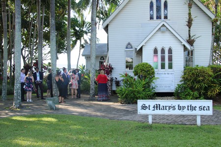 Before returning us to the hotel, Greg took us to a lookout over Port Douglas and Four Mile Beach, then down to a small harbour area. At St Mary's by the Sea church there was a wedding, on our 44th anniversary.