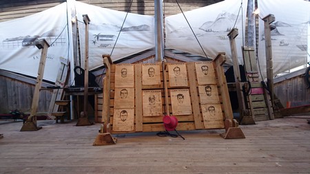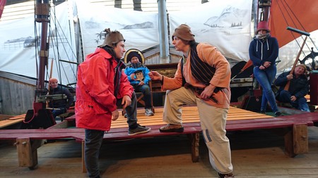 After checking in to Franklin Manor, we went into the small town (800 people) and booked for the Gordon River Cruise tomorrow. Then we went to see "The Ship That Never Was". It is a comedy version of the story of a group of prisoners who stole a ship and succeeded in getting to Chile. After a while some were caught and returned to Tasmania for trial. However, their defence was the ship had never been registered and therefore it could not be stolen, it had technically never existed. The play has been running for 23 years and the outdoor amphitheatre is operated by the Richard Davey Players. Richard Davey died a couple of years ago and it is now performed mostly by his daughter Kiah Davey. Ten prisoners escaped but each performance is two actors only. The audience participates for the others and it was great fun.