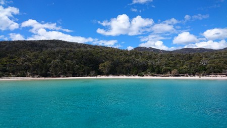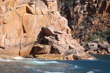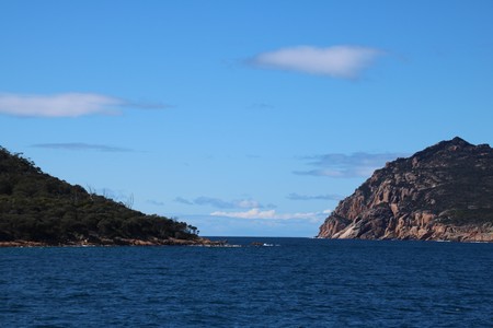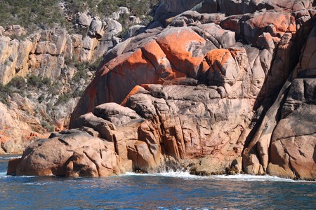 The Wineglass Bay cruise took us all around the Freycinet Peninsula, most of which is inaccessible by road. We therefore saw more than we otherwise would have done and learned a bit of the history from the captain / owner of the boat. The weather was good and yesterday's high winds had died down. Unfortunately it was not a good day for seeing whales and suchlike, not one!