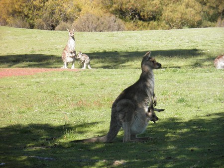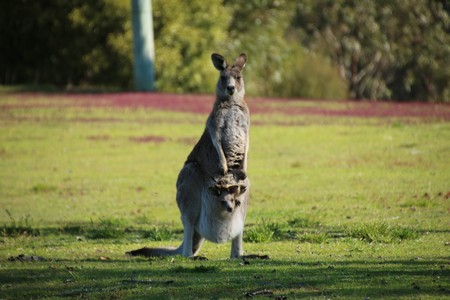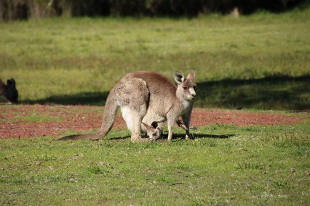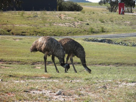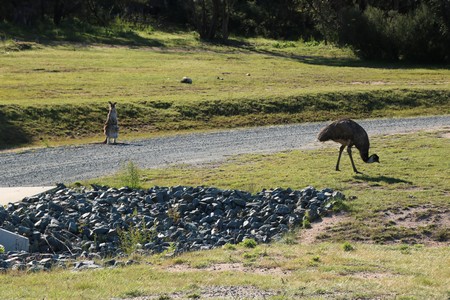 Bill had promised to take us to the Tidbinbella Reserve provided he was not called to be in court (he is a solicitor). Fortunately for us he was not and was able to pick us up earlier than expected. The hope was to see kangaroos, koalas, platypus and emus and in the end we did see all of them. After seeing some kangaroos as we drove around, we stopped and went for a walk. We managed to see a platypus but they are very shy so it was a distant view as it swam in the lake. There was also an enclosure with some koalas including a baby. Bill had brought a picnic and took us to a location where we saw a lot of kangaroos, some with joeys and many hopping around, sometimes at speed. However, all the time we were in the reserve, there was no sighting of any emus so we left with that box unticked. However, no more than a mile or so down the road we saw a small group of emus and were able to photograph them.