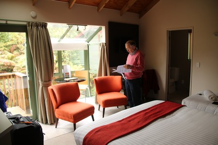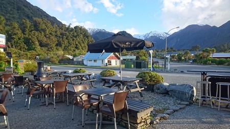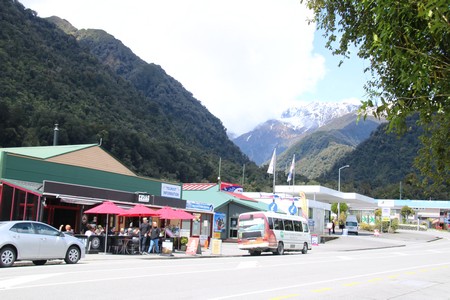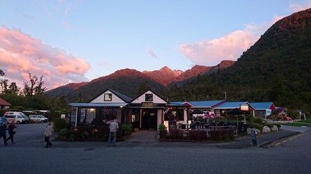 It rained all the way to Franz Josef , at times so heavily that we had to slow down. The journey was short so our lodge was not ready, instead we went to Snake Bite Brewery (really a cafe) to kill time. We also had a look around the shops until our lodge was available.