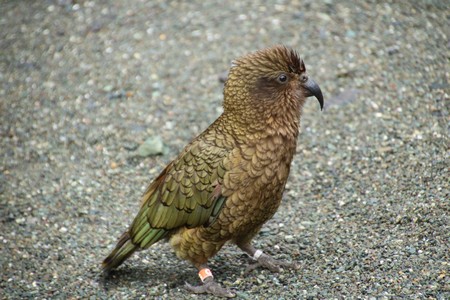 Kea bird waiting at end of a tunnel. When the traffic stops, they pounce.