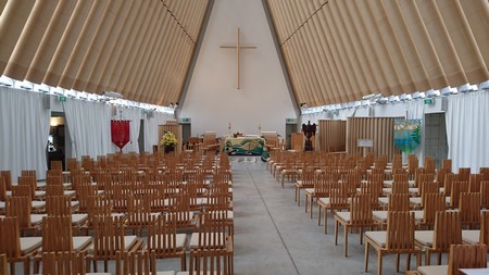 We woke to a dull but dry morning and by the time we had breakfast, it was too late for the bus tour that Chris and Annette had also recommended. Instead we went to the cardboard cathedral as it is known, or more correctly the transitional cathedral. After the 2011 earthquake one of the cathedral staff read about a Japanese "emergency architect". His expertise was in designing buildings with a planned short lifespan at minimal cost. He donated his services and this building was erected in just two years at a cost of NZ$5M. Although regarded as short term, its estimated lifespan is 50 years.